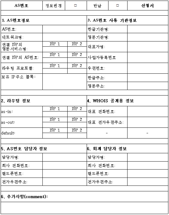 5. 진흥원은 AS번호를 할당하는 경우 할당정보를 데이터베이스에 등록하고 진흥원에서 제공하는 WHOIS를 통해 공개한다.