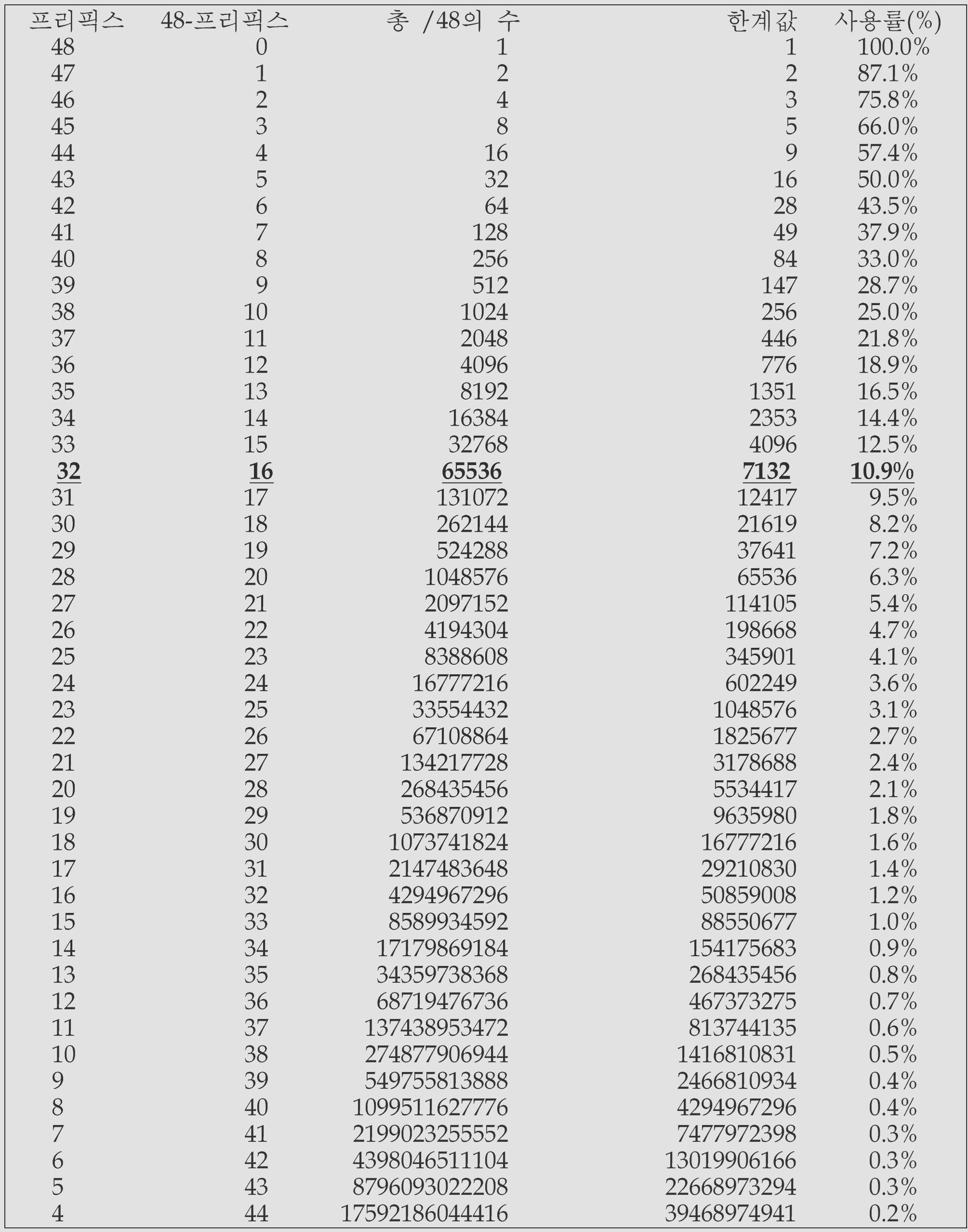 ※ RFC 3194 ‘The Host-Density Ratio for Address Assignment Efficiency: An update on the HD ratio’ (2001.11) 참조