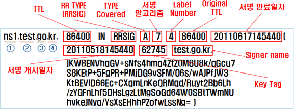 - RRSIG에 서명데이터 포함 - RRSIG은 서명검증에 필요한 정보포함 |