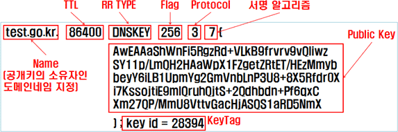 - 공개키는 일반에 공개 배포 - DNSKEY는 존의 공개키를 포함 |